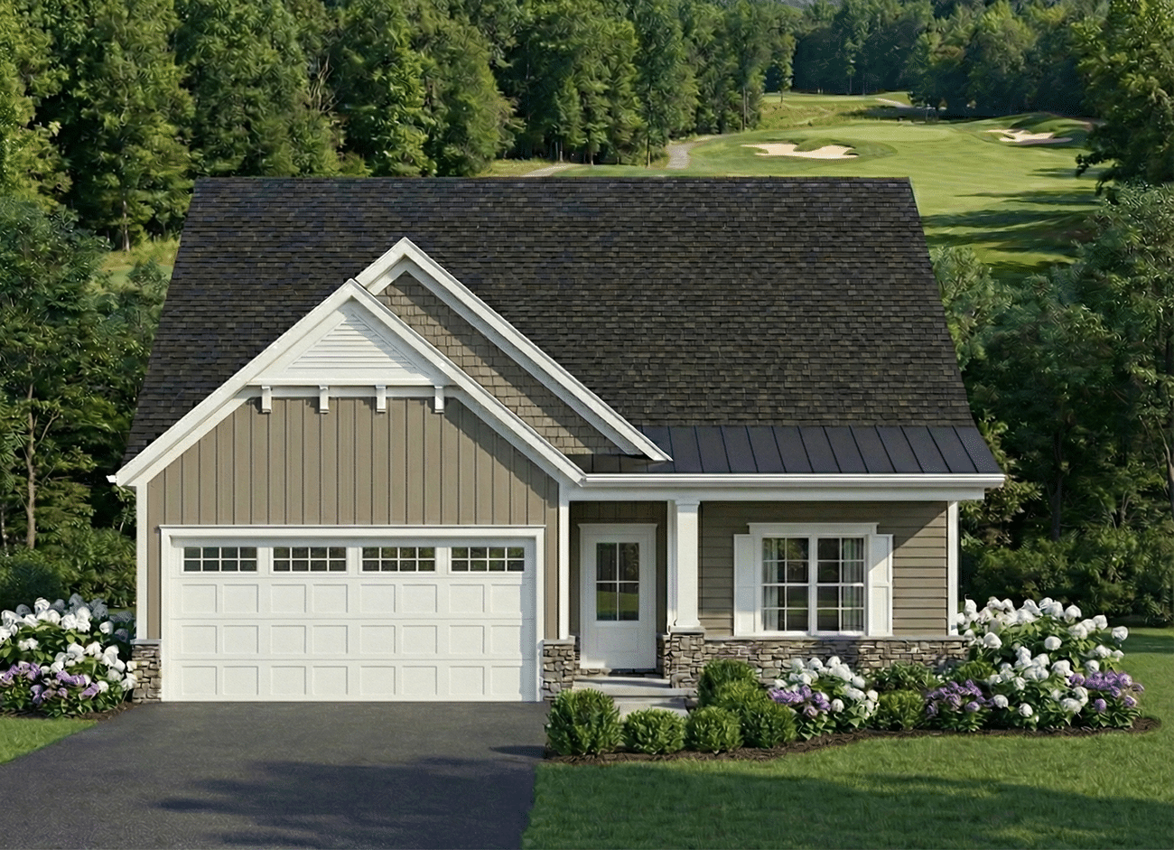 - 2 stall garages with cart storage (3 stalls on select sites).